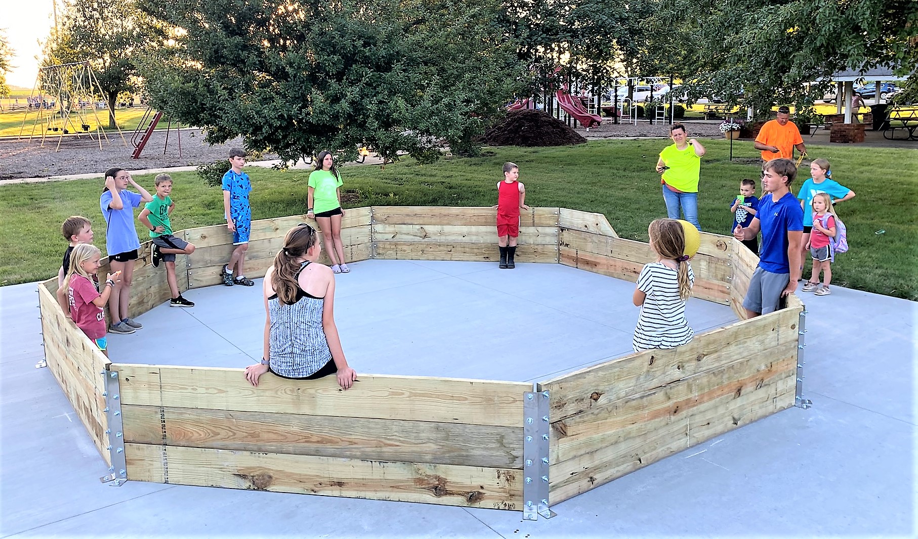 Cheryl Timmermann said, “Our club came together and installed the boards of the Gaga Ball pit in early July, and throughout the summer it was a huge hit. This has brought together children of all ages and kept them active. Often following baseball games, both teams came together and played Gaga Ball…. they were no longer competitors as a team, but out for survival as an individual.”