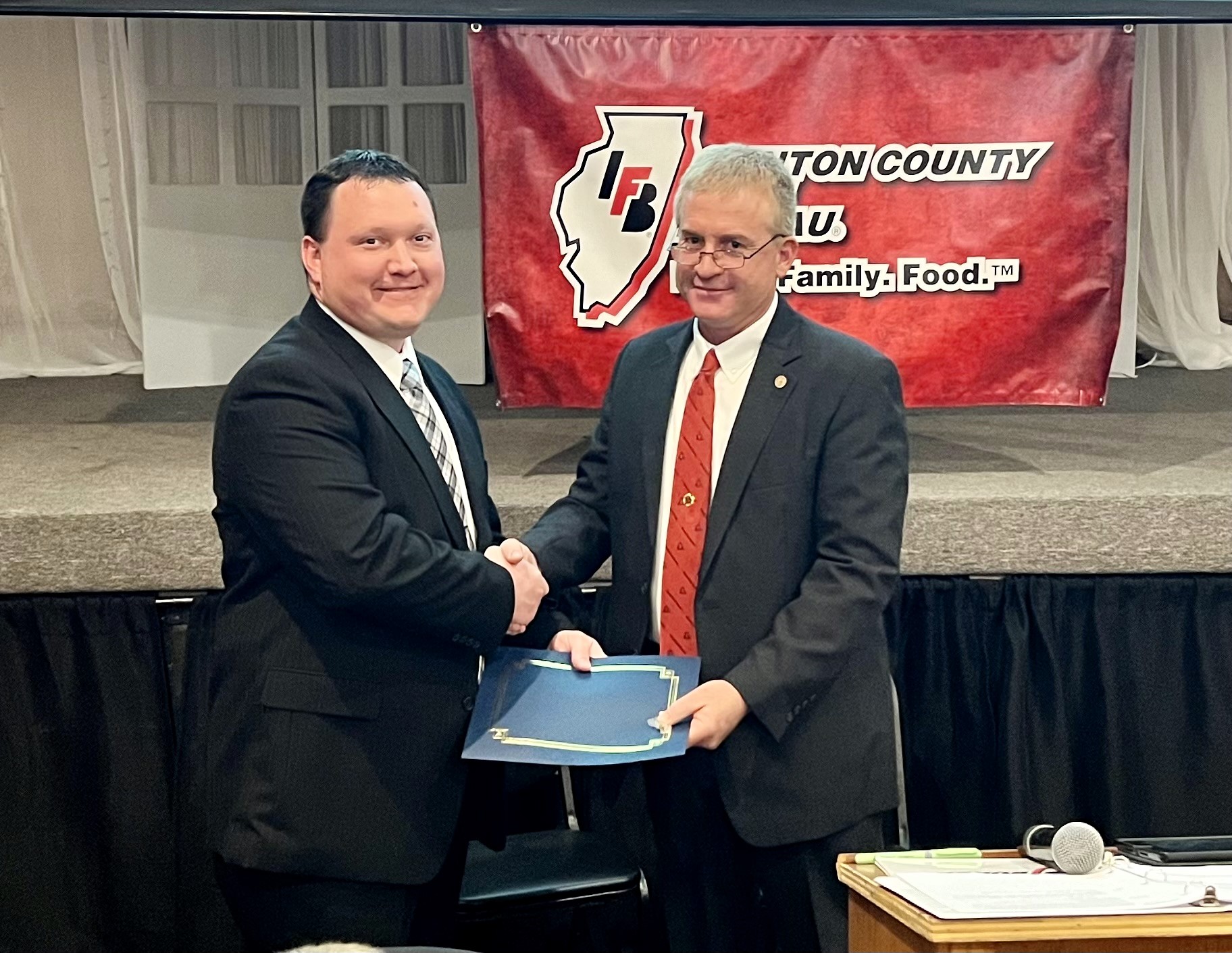 Members in attendance also heard reports from Legislative Committee Chairman Ron Holevoet, COUNTRY Financial Agency Manager Derek Nowicki, AITC Coordinator Susan Kleiboeker, Young Leader Committee Chairman Quinton Huelsmann, State Representatives Charlie Meier and Blaine Wilhour, a representative from Congressman Bost’s office, Farm Bureau Manager Brad Conant’s annual report, and a thank you from Carlyle FFA and IL Section 21 FFA President Kylee Wesselmann for the organization’s support of FFA activities in the county.