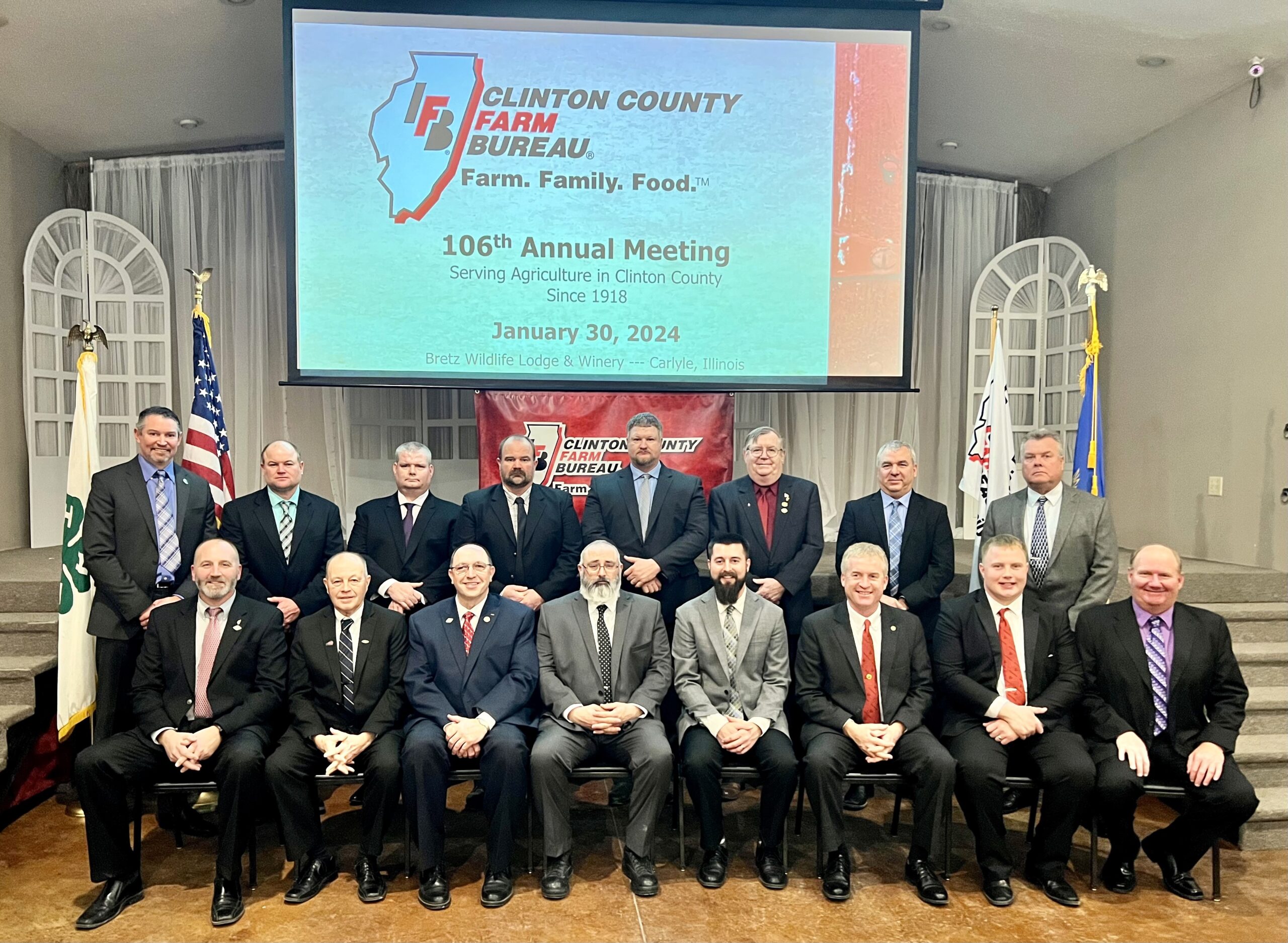 The Clinton County Farm Bureau held its 106th Annual Meeting on January 30th at Bretz Wildlife Lodge and Winery in Carlyle with approximately 350 members and guests in attendance. Highlights from the meeting included reports from the organization’s officers, staff, committees, and a couple special recognitions.