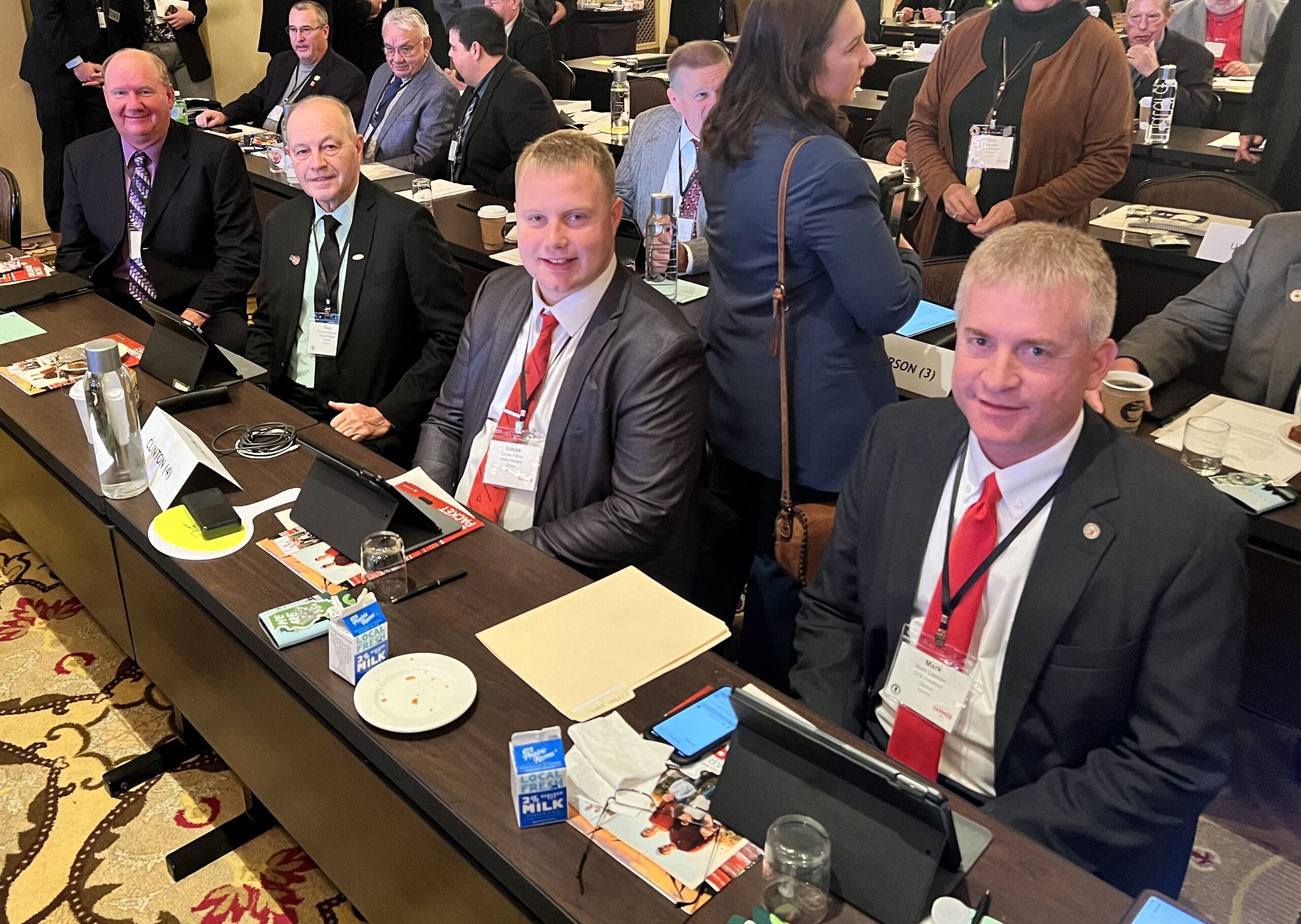 Clinton County Farm Bureau Delegates for the 2023 IAA Annual Meeting. From left: Cliff Schuette, Ron Holevoet, Lucas Hanke and Mark Litteken.