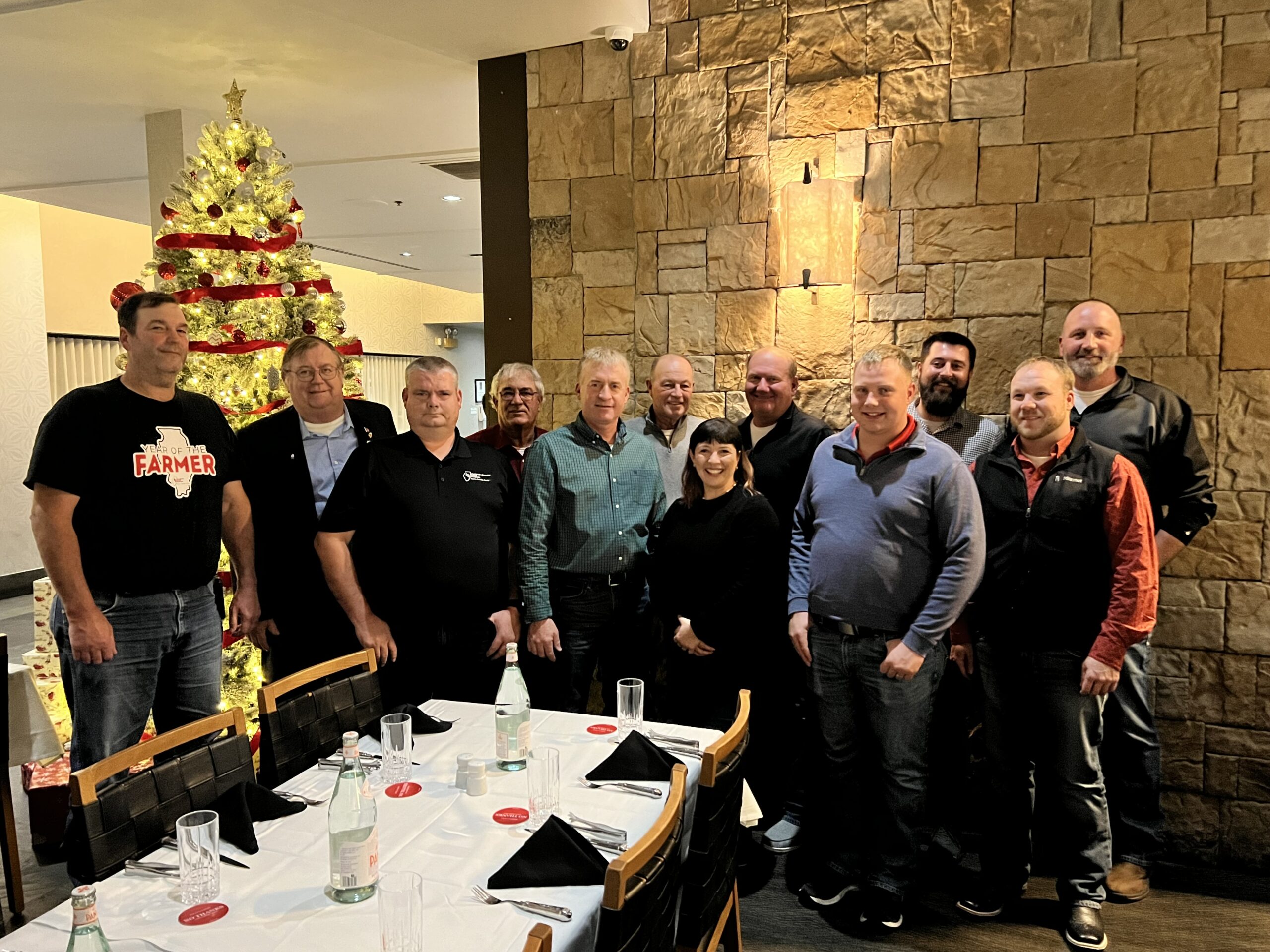 - Members from Marion & Clinton County met with their “Adopted” Legislator (Rep. Eva Dina Delgado) and her husband over dinner while in Chicago at the 2023 IFB Annual Meeting. Pictured (L to R): Brad Hester, Ray Krausz, Travis Hemker, Marion CFB President Steven Brummel, Clinton CFB President Mark Litteken, Ron Holevoet, Rep. Delgado, Cliff Schuette, Lucas Hanke, Quinton Huelsmann, Andy Headley, and Manager Brad Conant.