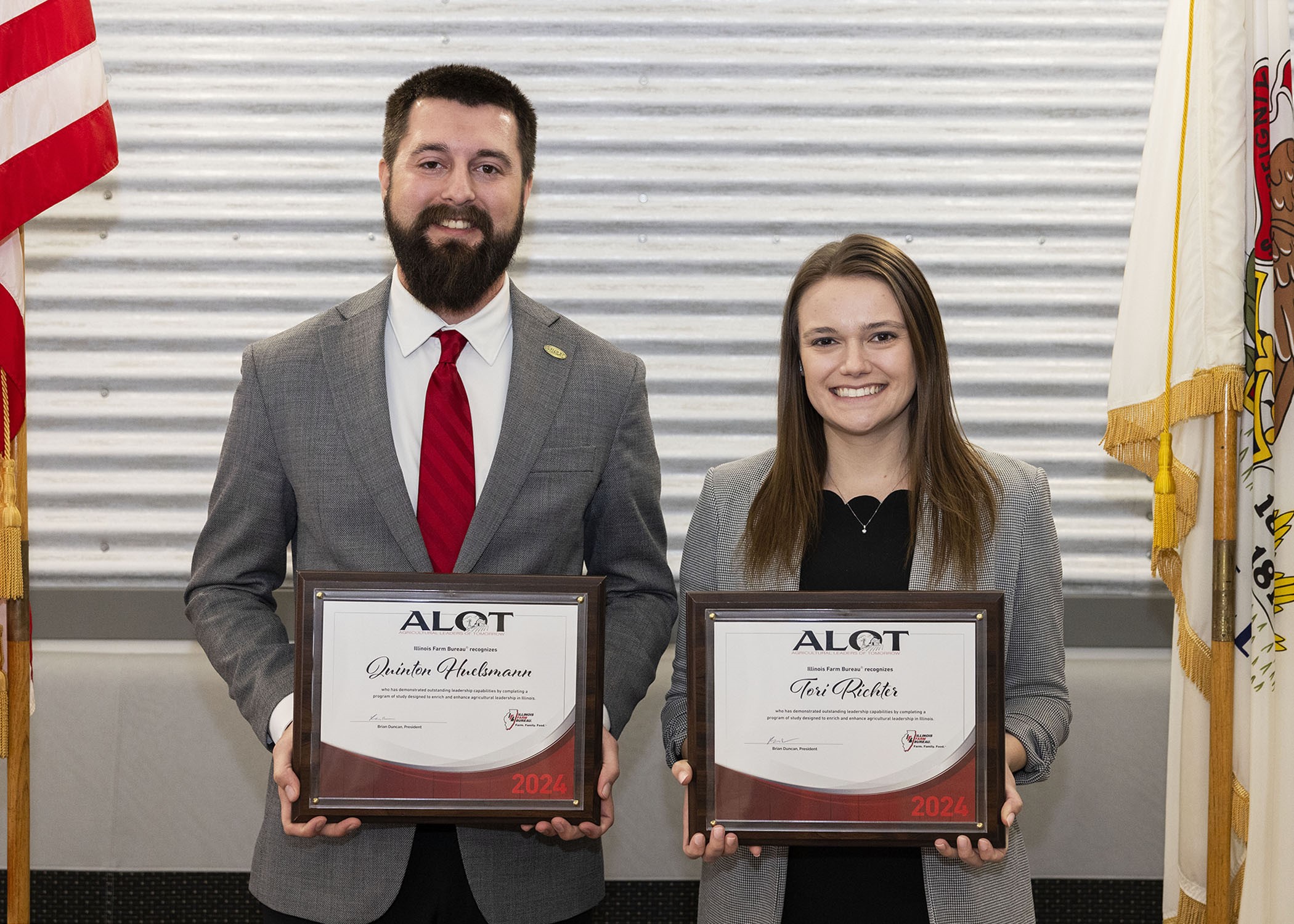 Tori Richter and Quinton Huelsmann graduated from Illinois Farm Bureau’s Agricultural Leaders of Tomorrow (ALOT) program, a comprehensive leadership development course, on March 20.