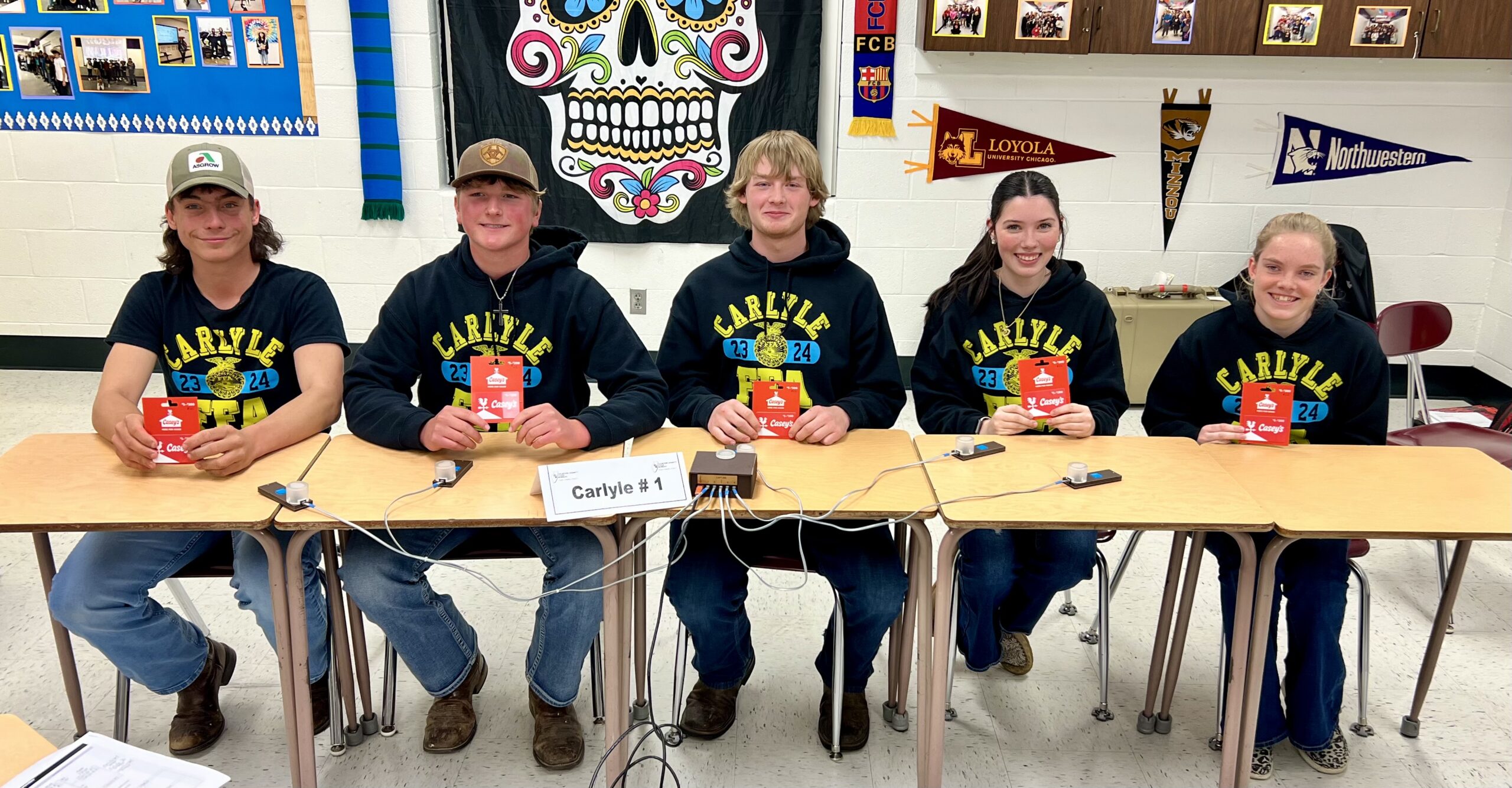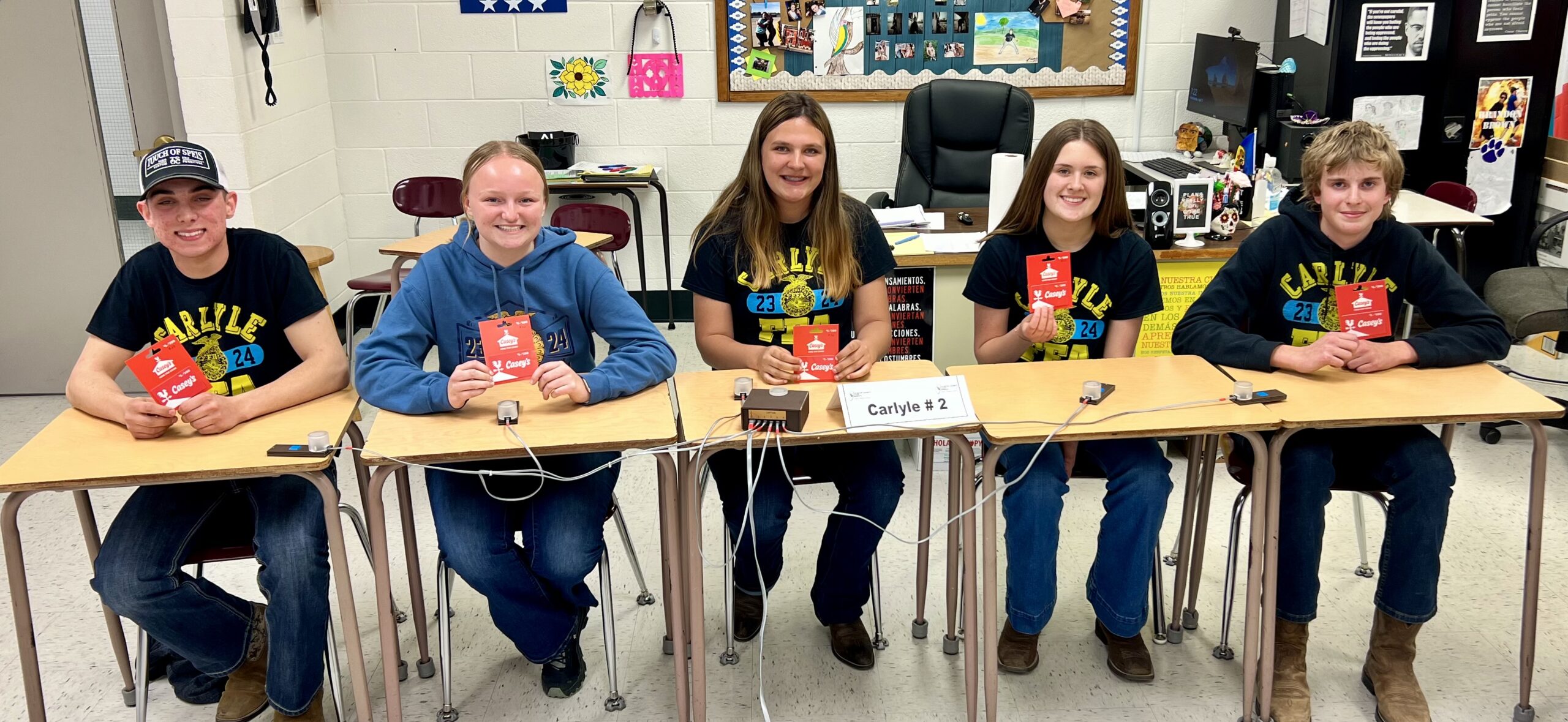 - Tanner Speiser, Kylee Wesselmann, Audrey Rahm, Ella Jordan, and Cooper Diekemper from Carlyle FFA won 2nd place at the Farm Bureau’s FFA Quiz Bowl.